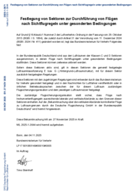 2025-1-3671 hebt auf 2025-1-3644 Festlegung von Sektoren zur Durchführung von Flügen nach Sichtflugregeln unter gesonderten Bedingungen Festlegung von Sektoren zur Durchführung von Flügen nach…
