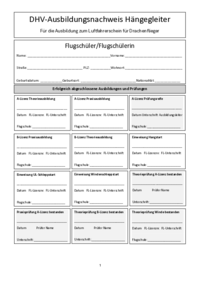 DHV-Ausbildungsnachweis Hängegleiter Für die Ausbildung zum Luftfahrerschein für Drachenflieger …