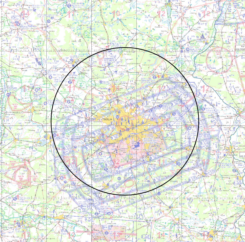 Seitlche Begrenzung: Kreis mit einem Radius von 30 NM um 52 31 34 N 013 22 20 O.